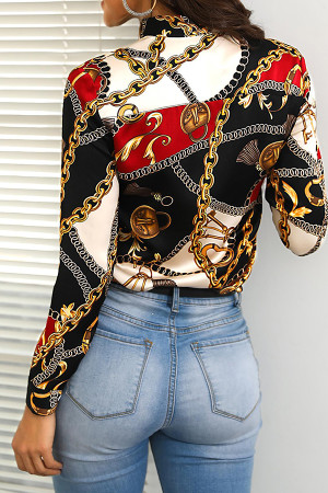 Chic Chain-Accented Chiffon Longsleeve Shirt