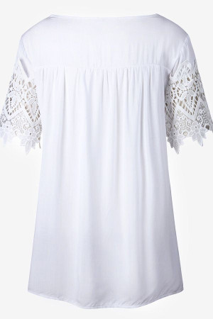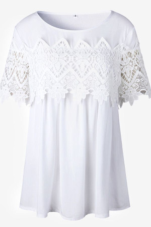 Women's White Lace Crochet Short Sleeve Casual T-Shirt