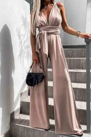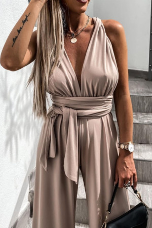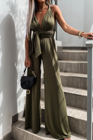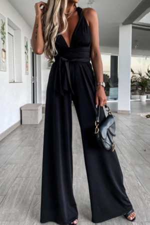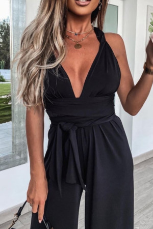 Elegant Summer V-Neck Bandage Jumpsuit with Hollow Out Straps and Solid Bodysuit Romper...