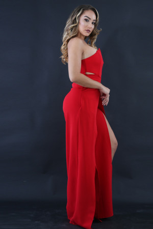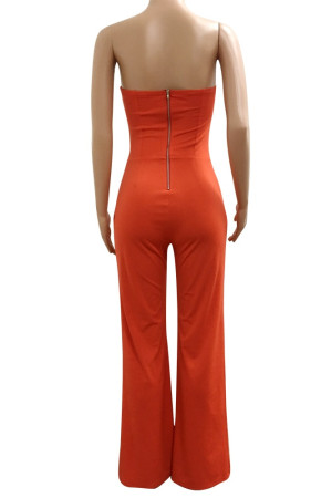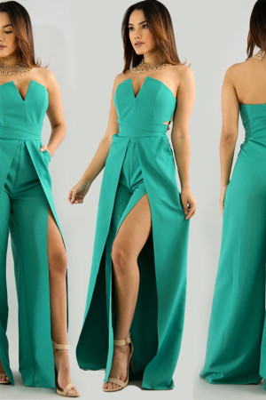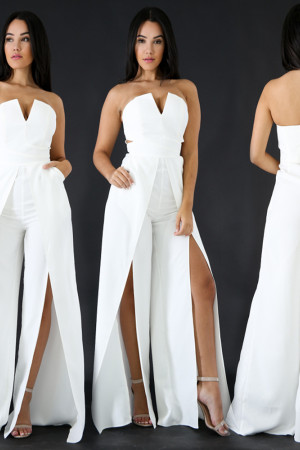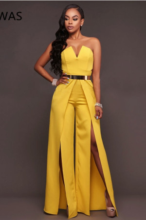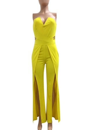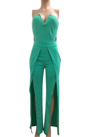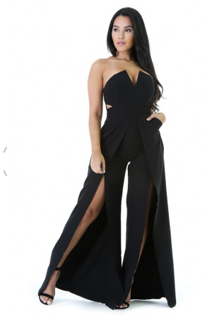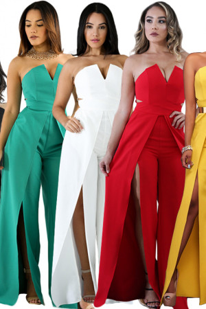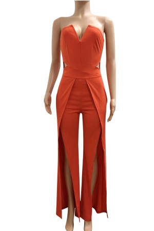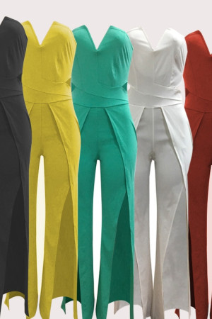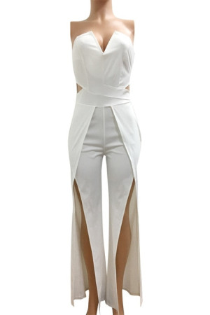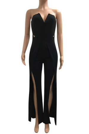 Sleek and Elegant Zipper Split Wide Leg Jumpsuit with Hollow Long Bodysuit