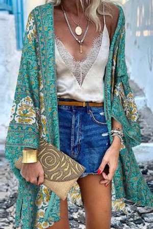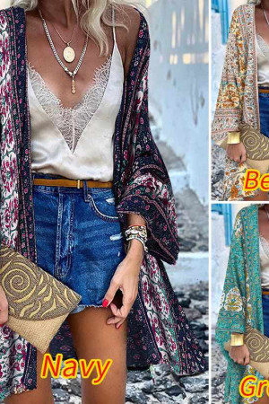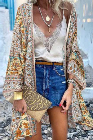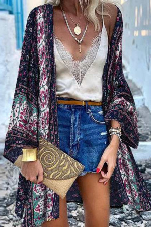 Bohemian Summer Chic: Floral Kimono Cape Cardigan Blouse