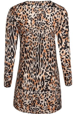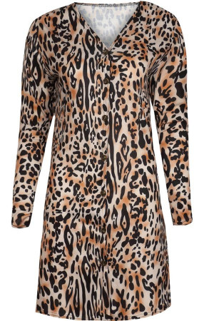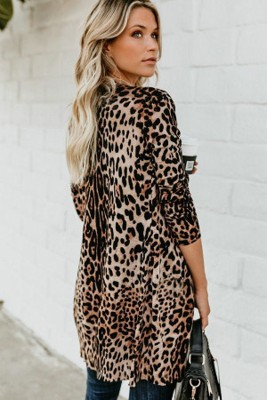 This casual cardigan coat features a brown leopard print, long sleeves, and a button-up front. It is perfect for adding a stylish touch to any outfit.