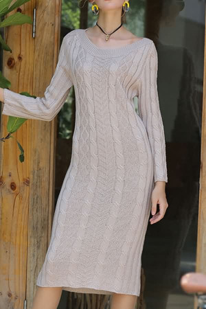 Cozy Cable Knit Boat Neck Long Sleeve Midi Sweater Dress