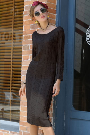 The Cable Knit Boat Neck Long Sleeve Casual Midi Sweater Dress is a stylish and comfortable midi-length dress perfect for casual wear. It features a boat neckline, long sleeves, and a cable knit pattern. The dress is made of a soft and cozy material, making it perfect for chilly days. It is a great choice for a relaxed, yet fashionable look.