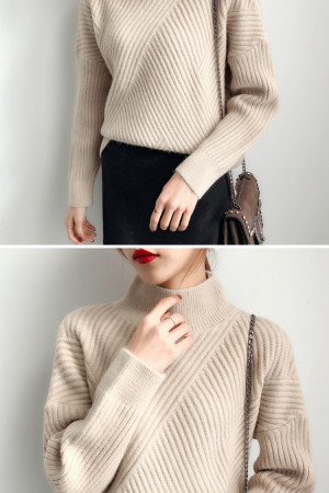 This streetwear style turtleneck sweater is made from a combination of cashmere and cotton, making it thick and suitable for winter. It is computer knitted with a solid pattern, has a full sleeve length, no closure, and a regular clothing length. It is suitable for the spring, autumn and winter seasons.