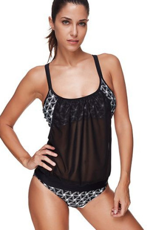 This set includes a spaghetti strap patchwork top and a matching panty. The top features a unique patchwork design with spaghetti straps and a scoop neckline. The panty is made of a soft and stretchy fabric and has a low-rise waistline with a cheeky cut. Both pieces are perfect for a night out or a day of lounging around the house.