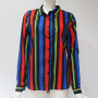 Long Sleeve Turn Down Collar Striped Chiffon Blouse