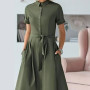 Women's Army Green Button-Up Tied Waist Short Sleeve Casual Shirt Dress