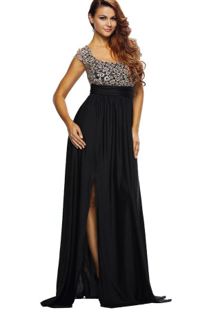 Elegant Black Lace Backless Maxi Dress with Slit Detail