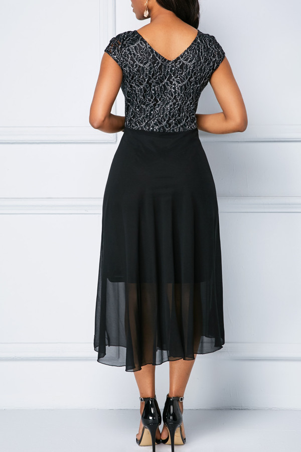 Elegant Cap Sleeve Lace Patchwork Chiffon Dress