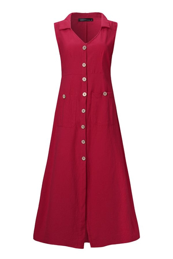Cool & Casual: Neck Buttons Down Summer Sleeveless Cotton Linen Sundress Sarafans Party Tanks...