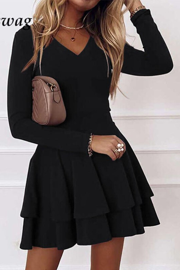 This dress is perfect for all seasons and occasions. It is made of cotton and polyester, and features a V-neck, regular sleeve, natural waistline, and A-line silhouette. The pattern is solid and the sleeve length is full. It is a casual, yet elegant dress that is perfect for club wear, streetwear, parties, meetings, dates, and beach wear.