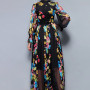 This vintage-style dress is made of chiffon, polyester, and cotton and features an A-line silhouette, a bow neckline, full-length sleeves, a bow decoration, and a natural waistline with a floral pattern. It is suitable for summer wear.