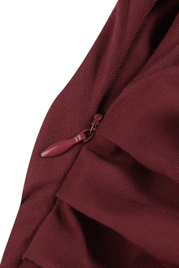 This jumpsuit is made of a blend of rayon and polyester, with a solid pattern and broadcloth fabric type. It is designed in an office lady style, with wide leg pants, regular fit, full length, and high waist type. It also features pockets as a decorative element.